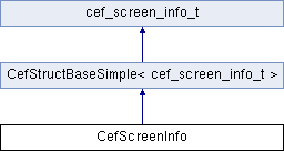 Public Member Functions inherited from CefStructBaseSimple< cef_screen_info_t > | |