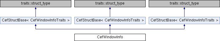 Public Types inherited from CefStructBase< CefWindowInfoTraits > | |